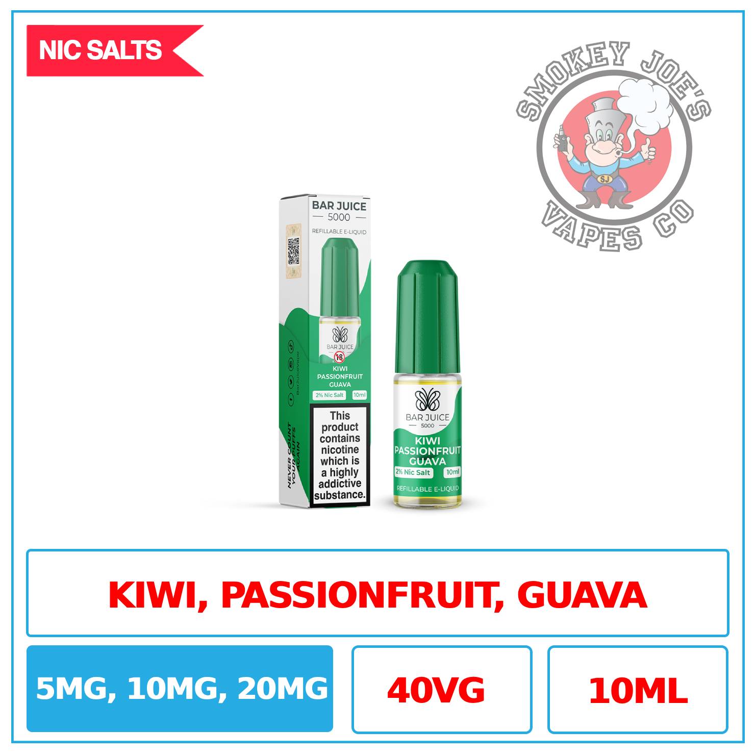 Bar Juice 5000 Kiwi Passionfruit Guava Nic Salt: Experience the tropics like never before. Perfect for MTL vapers seeking a delicious, refreshing, and layered nic salt experience.