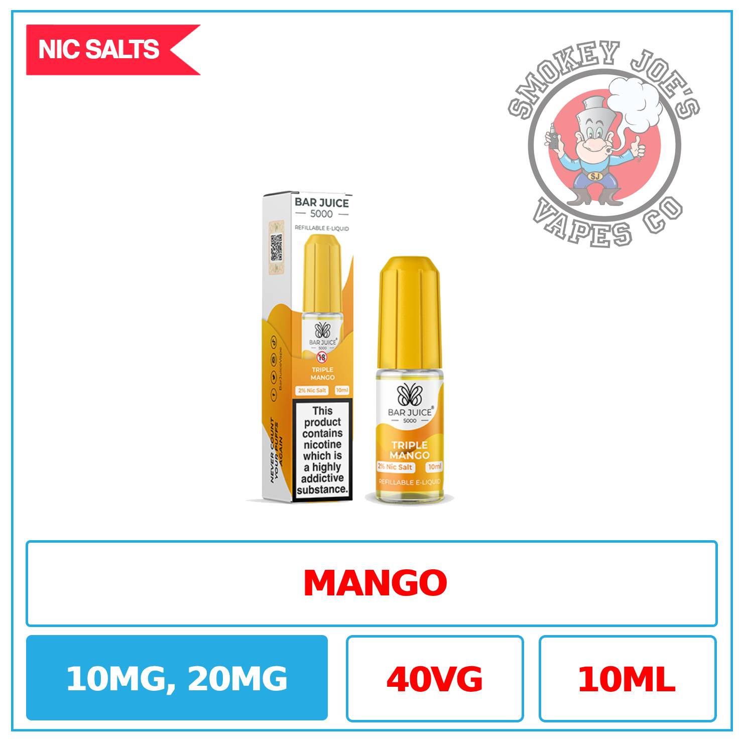 Bar Juice 5000 Triple Mango Nic Salt: Escape the ordinary and explore a world of pure mango bliss. Perfect for MTL vapers seeking a delicious, refreshing, and authentically tropical nic salt experience.