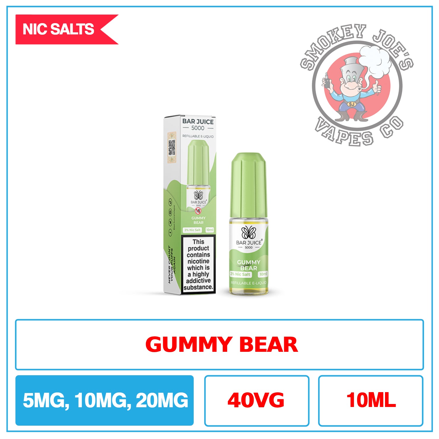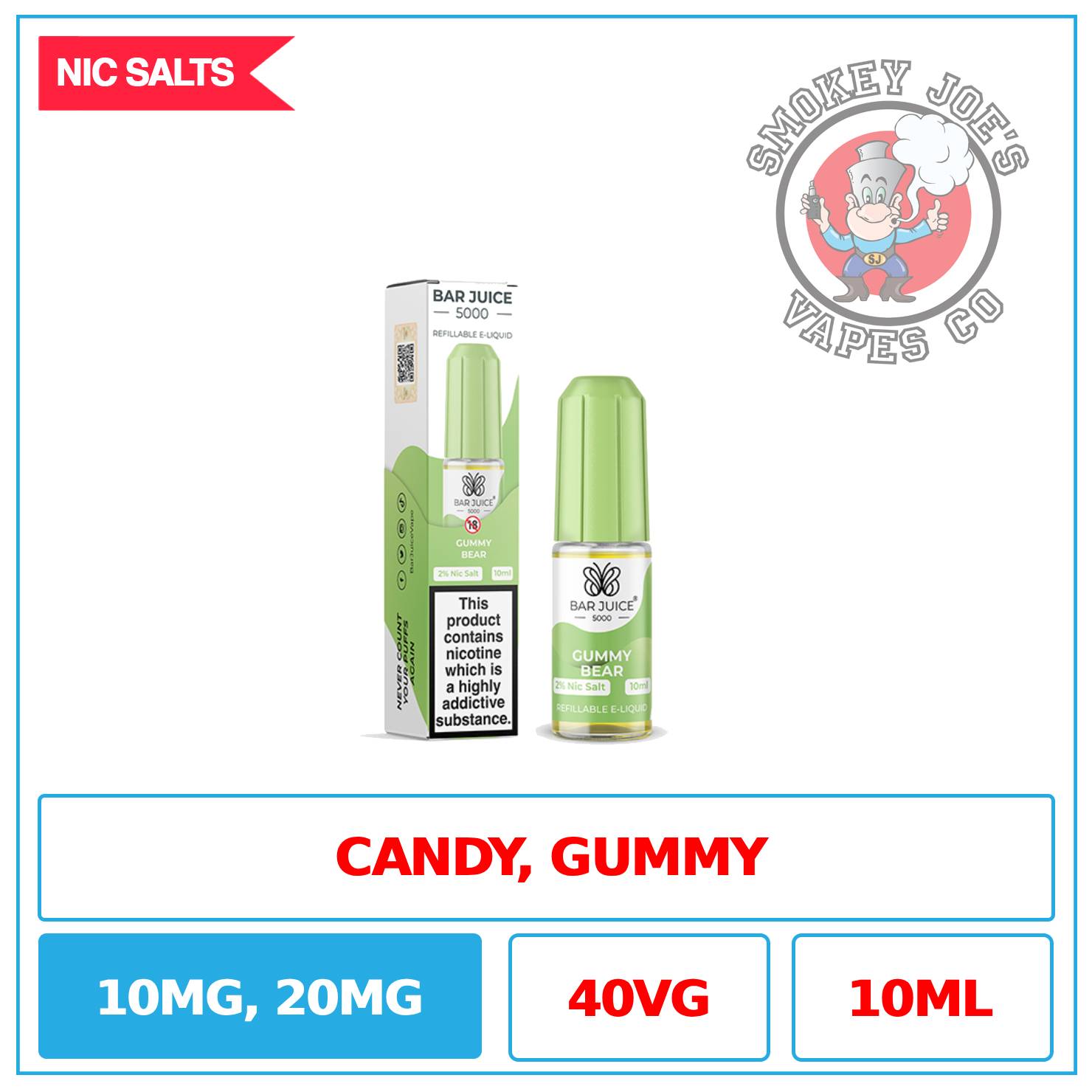 Bar Juice 5000 Gummy Bear Nic Salt features a 40% VG ratio, ideal for mouth-to-lung (MTL) vapers who prioritize bold flavour over massive clouds.